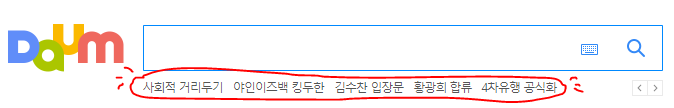 검색창 바로 아래쪽 보면 몇 가지 키워드들 있는데