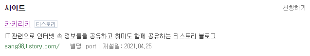 원래 다음에 자신의 티스토리 블로그 주소를 검색하면 본인 티스토리 블로그가 나와야 하는데