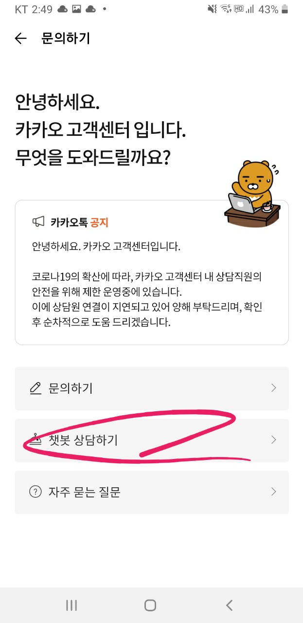 근데 저는 카카오톡으로는 문의를 안 했습니다