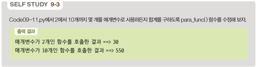 print("매개변수가 10개인 함수를 호출한 결과 ==> %d" % hap)