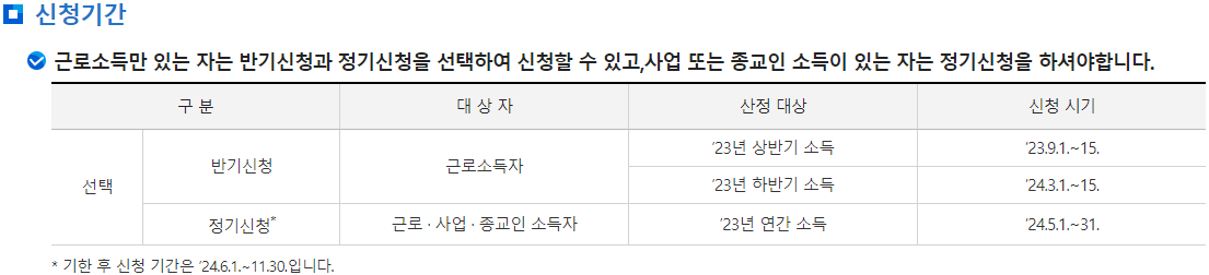 A. 신청 기간은 매년 변할 수 있으므로, 국세청 홈페이지에서 최신 정보를 확인하시는 것이 좋습니다.