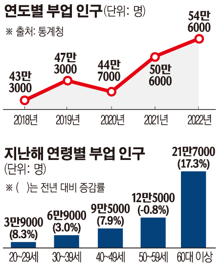 부업을 하는 인구는 주로 60세 이상 고령층에서 증가했으며, 지난해 이 연령대의 부업 인구는 1년 전보다 17.3% 증가한 21만 7000명으로 전체 부업인구 중 거의 40%를 차지했습니다. 또한, 이 연령대가 전체 증가분의 80%를 차지했습니다. 반면, 20대와 30대 청년층의 증가도 있었으며 50대는 오히려 감소했습니다. 통계에 따르면 N잡으로 얻는 월 수익은 20대 평균 53만 원, 30대 평균 69만 원, 40대 평균 92만 원, 50대 이상 평균 105만 원이라고 합니다.
