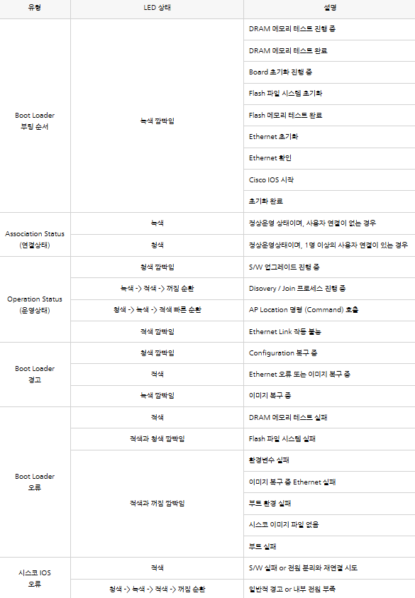 Cisco AP의 LED 상태별 증상에 대해 알아보도록 하겠습니다.