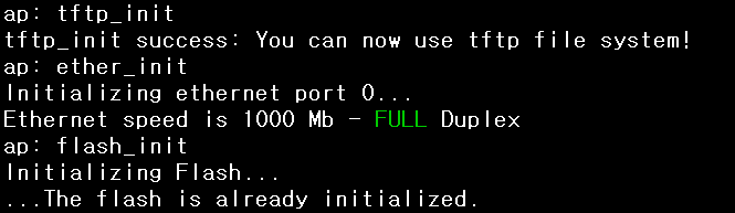 TFTP의 주소와 파일 이름, AP 디렉토리 순서를 맞게 입력하셔야 이미지를 다운로드 받을 수 있습니다. 위 보기는 예시입니다.